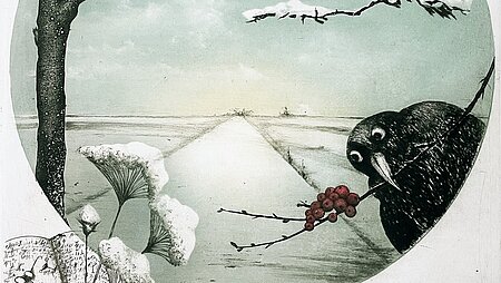 Gezeigt wird eine Auswahl seiner fein gearbeiteten Radierungen, in denen der Künstler mit großer Präzision und feinem Humor das Spannungsverhältnis zwischen Form und Bedeutung, Linie und Assoziation auslotet.