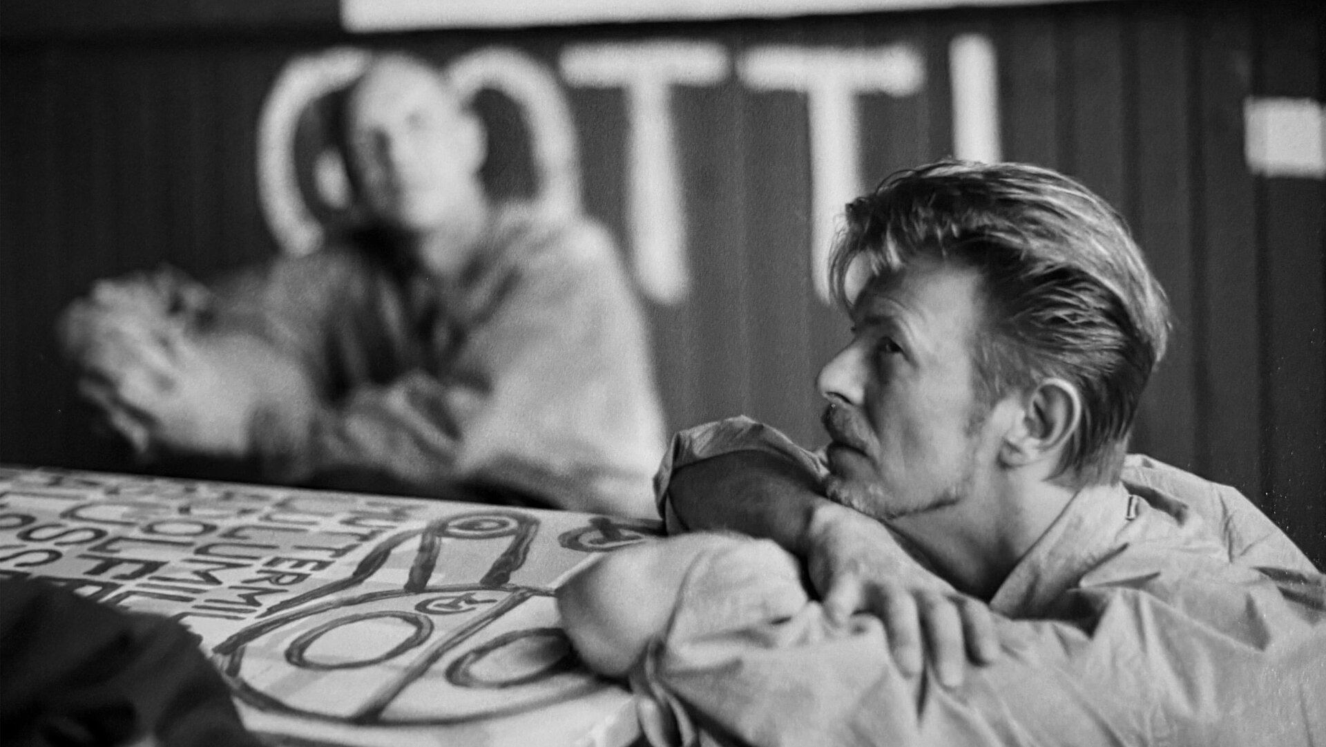 Ebenso beobachtend und sehr diskret fing De Grancy mit ihrer Kamera Momente der Stille, Begegnung und Anteilnahme ein. Ihre Fotos sind reduziert, oft mit klaren Linien und Betonung auf Gestik, Raum und Beziehung zwischen Bowie, den Künstler*innen und dem Umfeld. Um ihre Erzählweise und ihren besondere Blick zu zeigen, wurde die Auswahl und Anordnung der Fotografien in enger Zusammenarbeit mit de Grancy angeordnet. Bedauerlicherweise verstarb sie noch vor Eröffnung der Ausstellung in L.A. in Wien.
