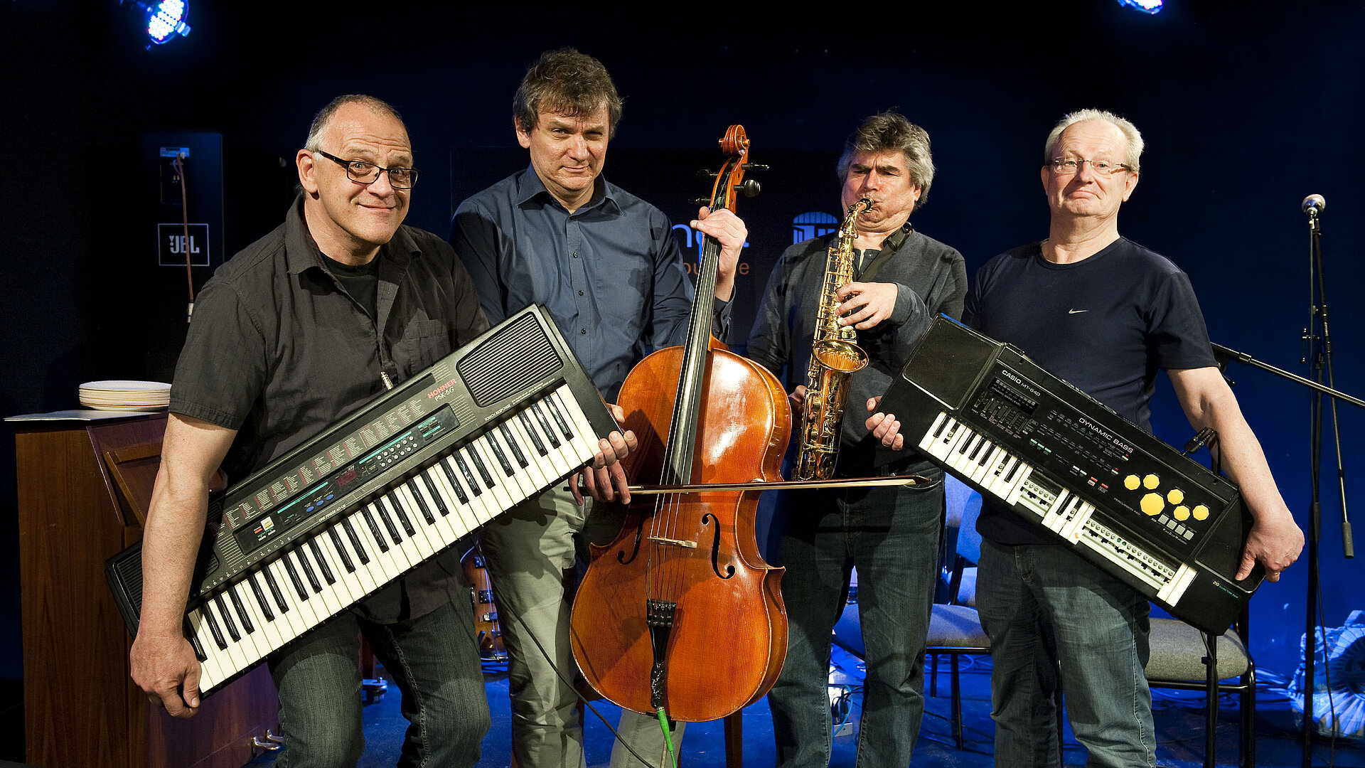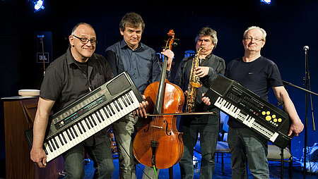 Prof. Dr. Wolfgang Hirschmann Klavier, Violoncello, Gesang, Oral-Drums, Chefmundschlagzeuger Klaus Hübner Saxophon, E-Gitarre, E-Bass, Querflöte, Klavier, Cheftexter Dr. Thomas Hirschmann Klavier, Keyboard, Gesang, Chefmimiker Dr. Andreas Rose Gesang, Keyboard, Stegreiflyrik, Chefideologe