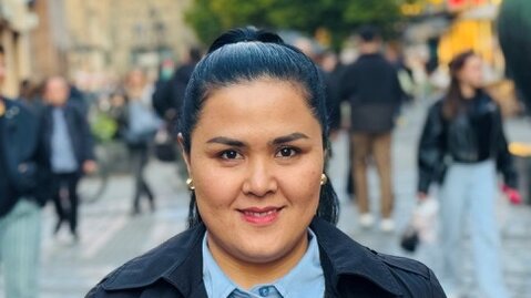Auf dem Bild ist Fatima Batory aus Afghanistan zu sehen. Sie hat einen Master Abschluss in Internationale Beziehungen und lebt seit drei Jahren in Deutschland.