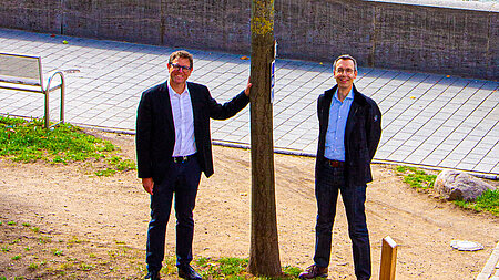 Ein Baum unweit der Alten Mainbrücke und des Würzburger Rathauses schultert diese grundsätzlichen Fragen nun symbolisch. Für die Esche gilt, sie schlägt tiefe Wurzeln und ihr Holz trotzt hart und biegsam auch größeren Stürmen. Oberbürgermeister Martin Heilig und Gartenamtschef Dr. Helge Bert Grob haben nun eine kleine Tafel an der Esche anbringen lassen, die aufmerksame Passanten, Touristen oder Brückenschoppentrinker mit den Zeilen „Demokratie wuzelt in Freiheit, blüht durch Vielfalt.“ inspirieren soll.
